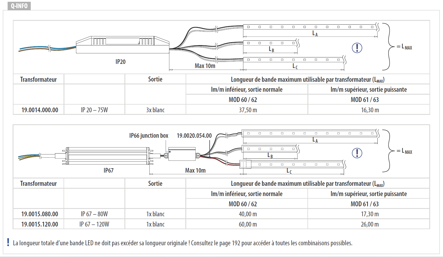 - Lorsque des bandes sont reliées entre elles au moyen de raccordements, la longueur maximale d’une extrémité à l’autre de la bande LED ne doit pas excéder la longueur originale de la bande !